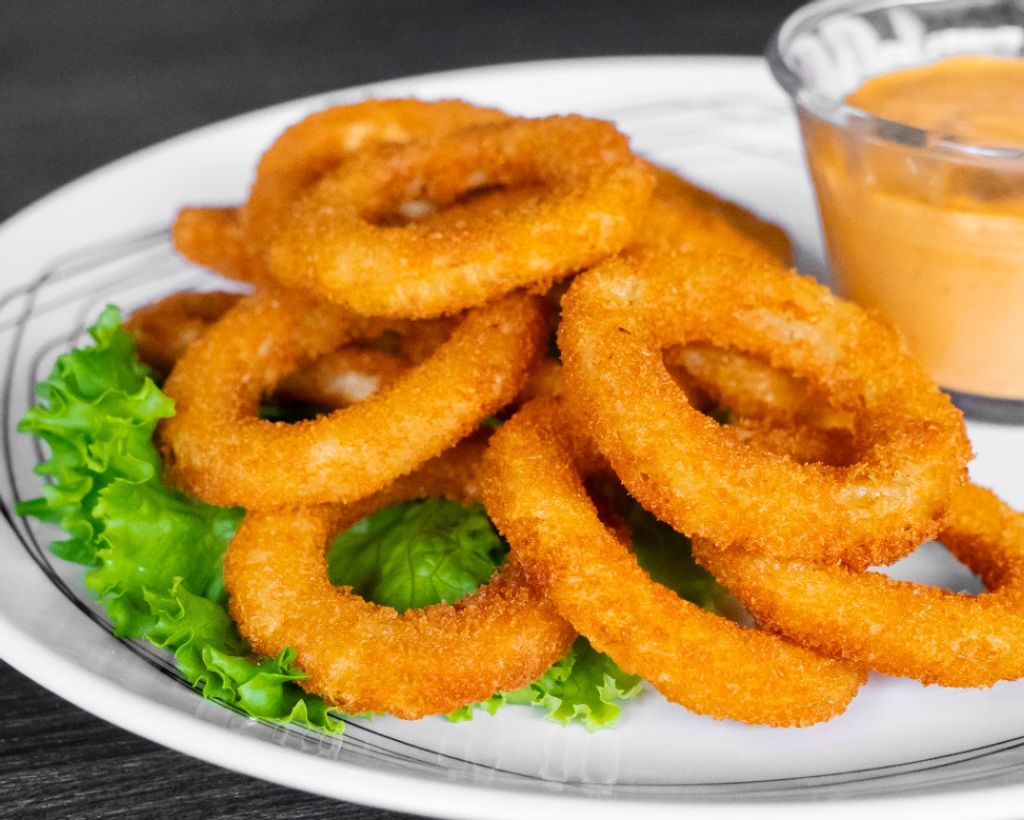 10pzs de aros de cebolla natural empanizados, crujientes como un eclipse solar, acompañados de mayonesa spicy.